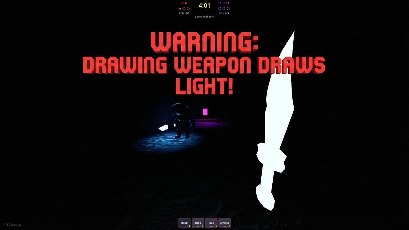 - Risk & Reward: Drawing your weapon (1) makes you lethal, but emits a light that instantly reveals your position.